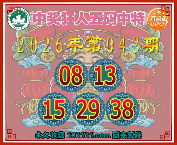 043期:《中奖狂人》 🧩五码中特🧩【08.13.15.29.38】开:13