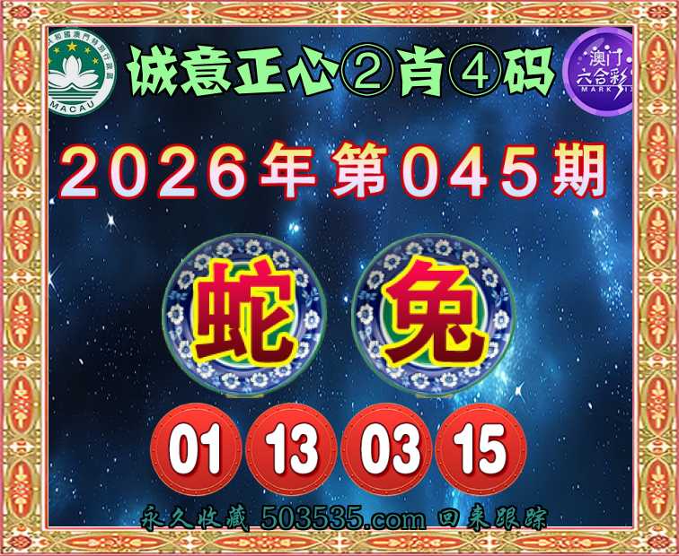 045期: 🧩『诚意正心』 🧩②肖④码🧩【兔】【01.13.03.15】开:蛇01