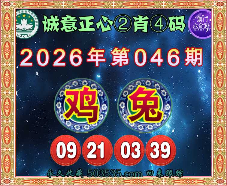 046期: 🧩『诚意正心』 🧩②肖④码🧩【鸡】【09.21.03.39】开:兔03准记录可查